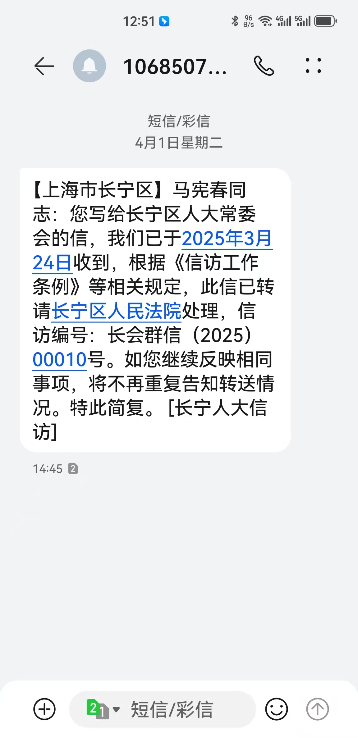 上海市长宁区人民检察院收到举报信的回复