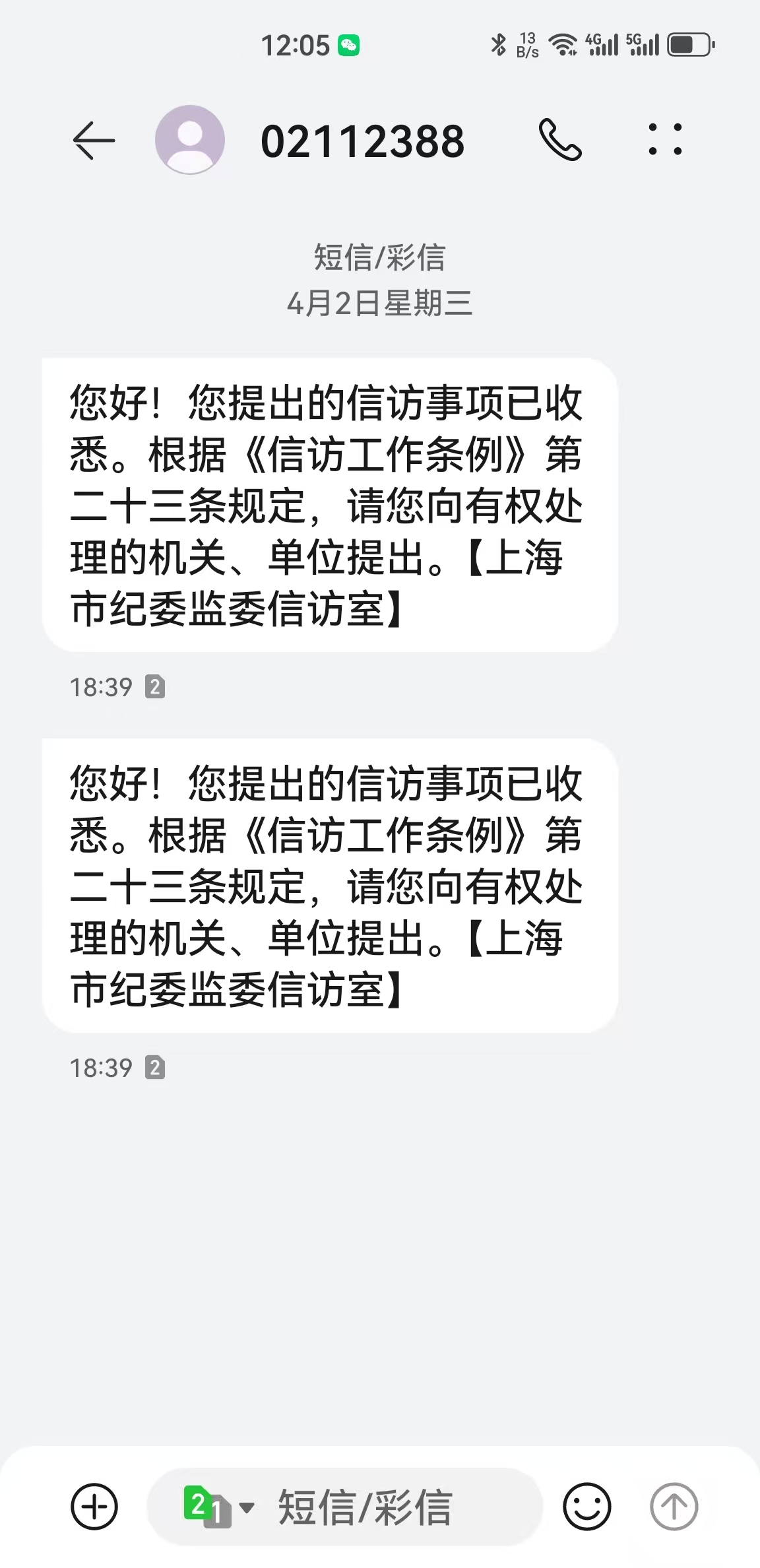 上海市纪委监委信访室不负责任